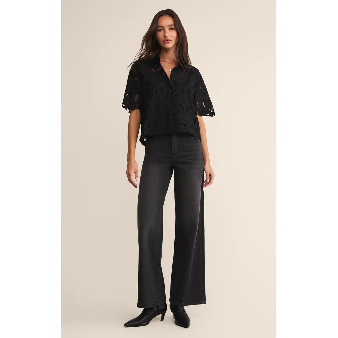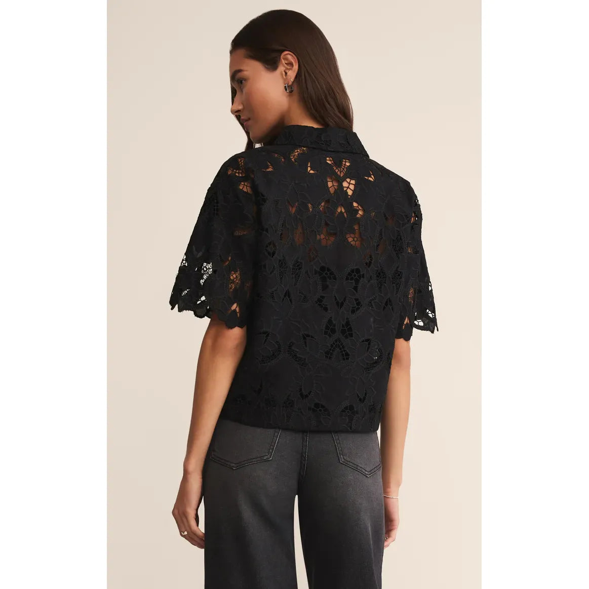 Intricate embroidery and an airy feel make this button-up an easy way to dress up your look. Delicate embroidery meets breezy cotton crepe in this short-sleeve button-up. The collared silhouette and airy fabric make it a polished yet easy layer for day-to-night styling.
