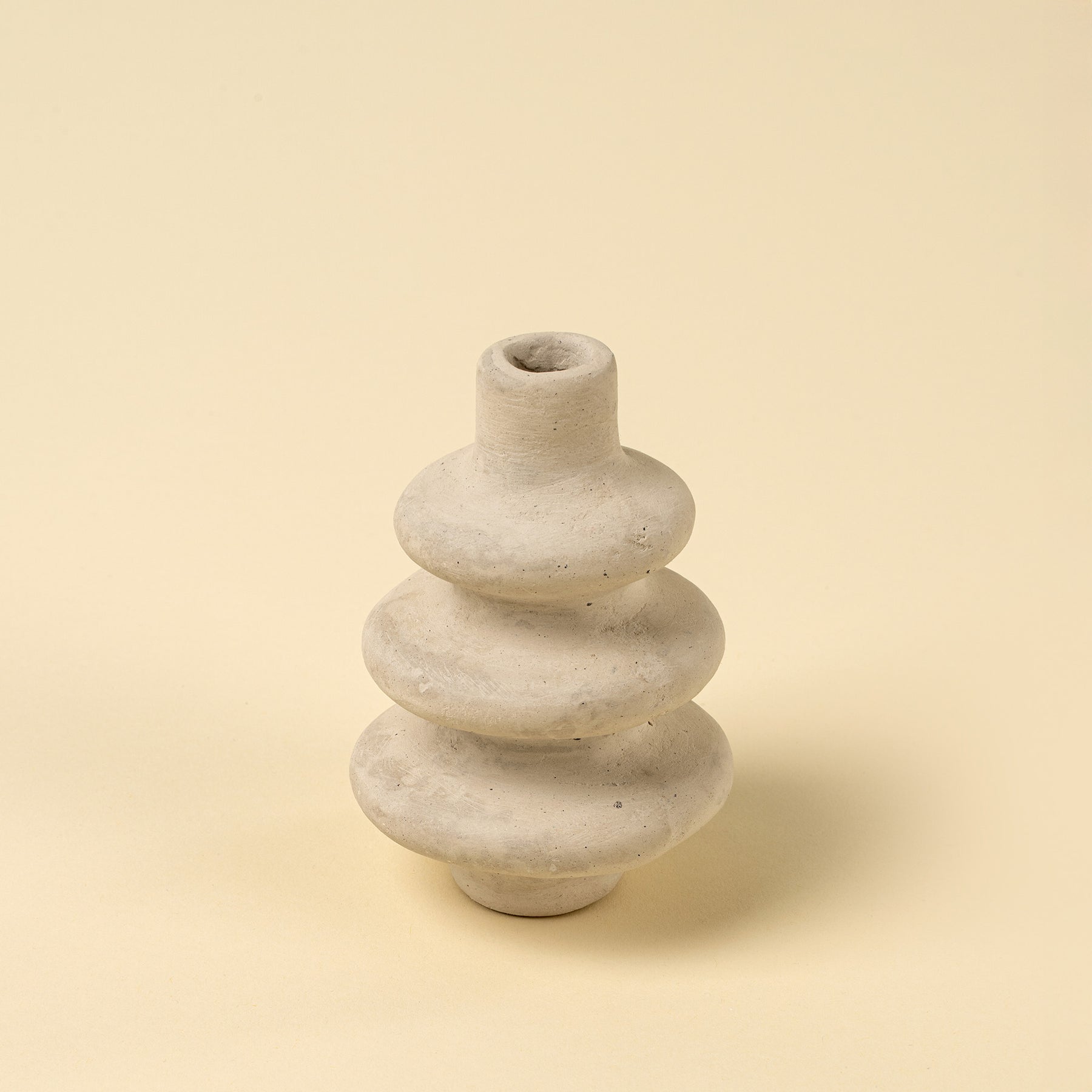 Sculptural and sustainable, the Ripple Paper Mache Bud Vase is a modern accent made for thoughtful styling. Handcrafted in India using traditional methods and recycled newspaper, this petite vase showcases a creamy matte finish and gently wavy silhouette that adds quiet movement to any space. Lightweight and full of character, it’s a beautiful example of artisan-made, eco-conscious design.