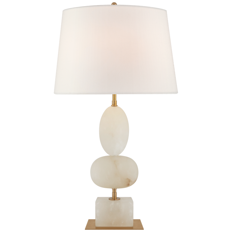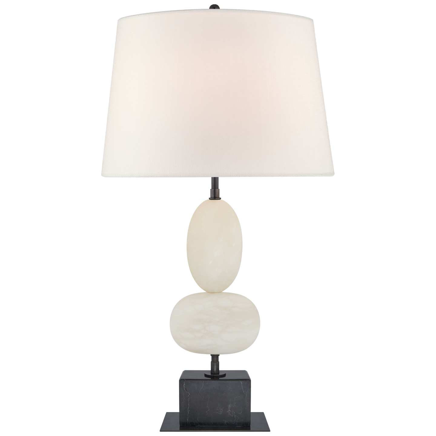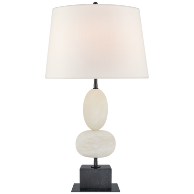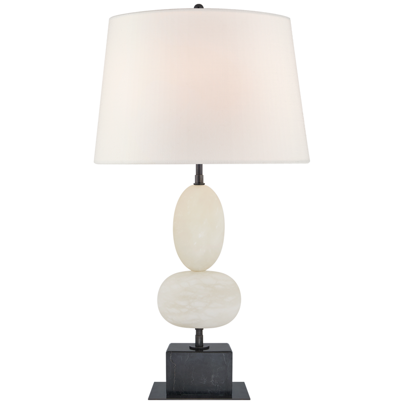 Dani LED 28" Cordless Table Lamp with Oval Linen Shade in 2 finishes: Alabaster and Alabaster with Black Marble Base.