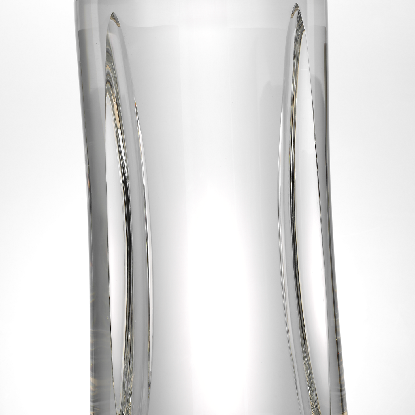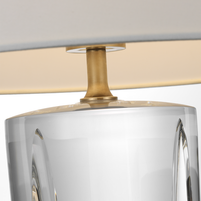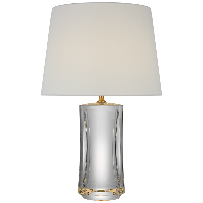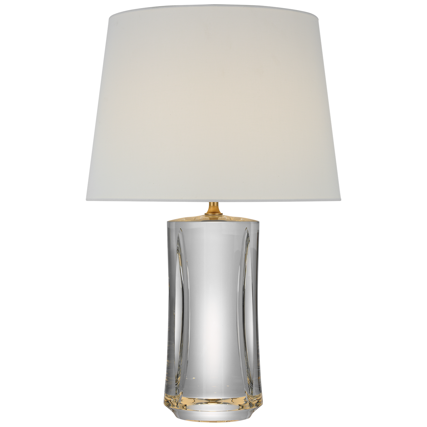 Figlia 27" Cordless V-Cut Round Table Lamp in Crystal with Linen Shade