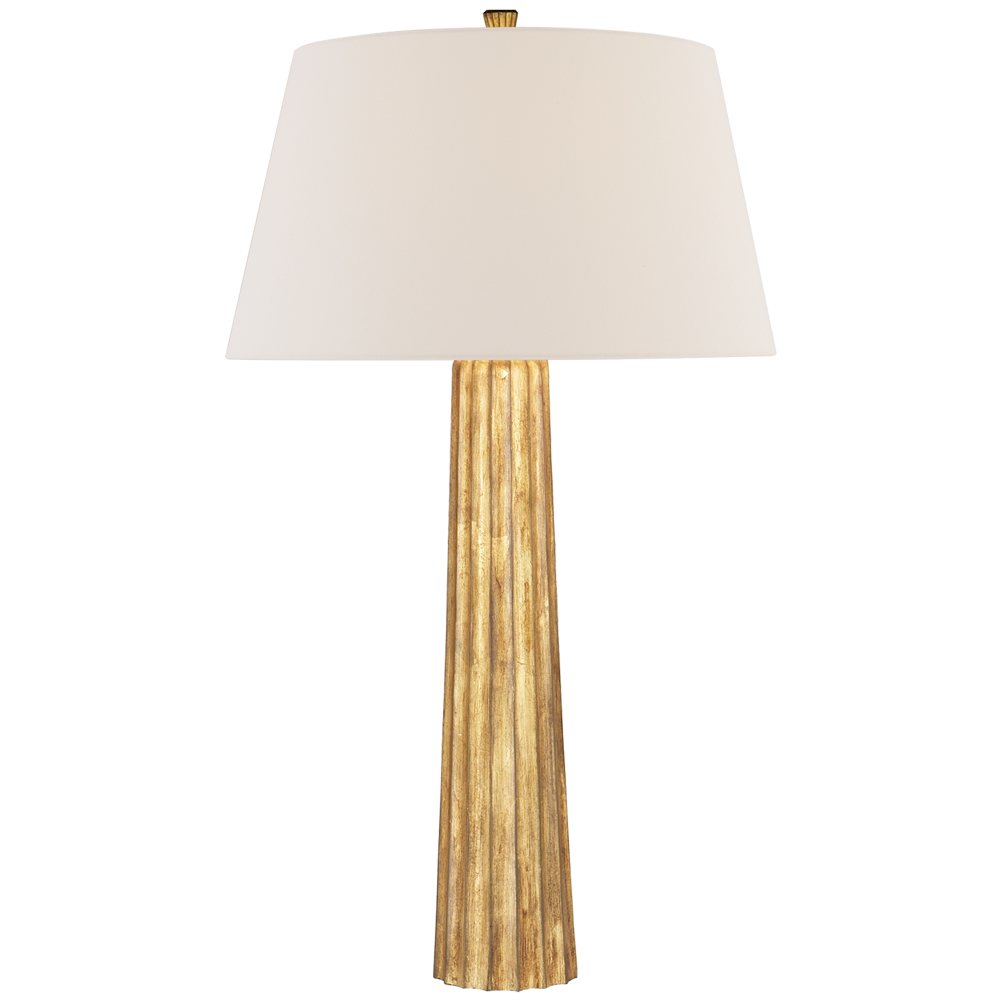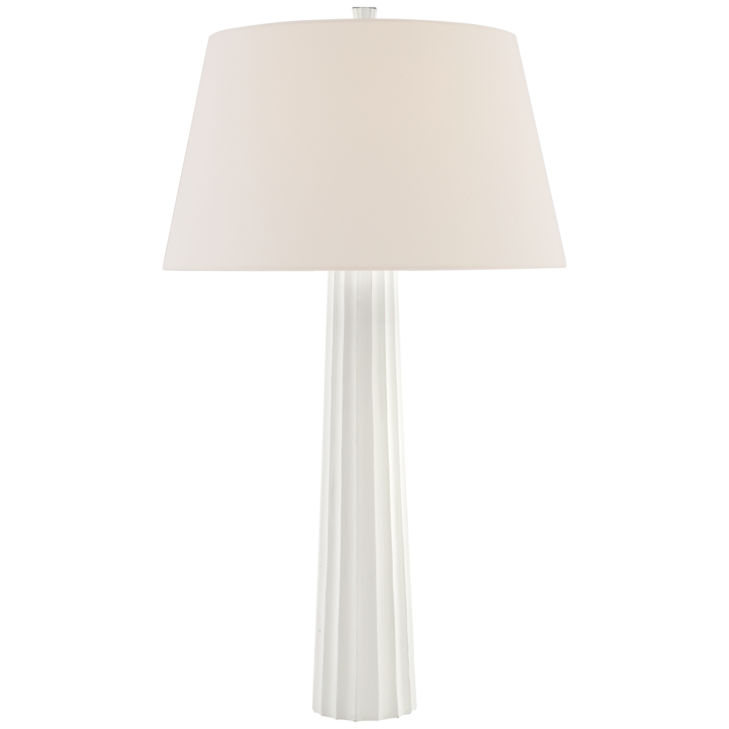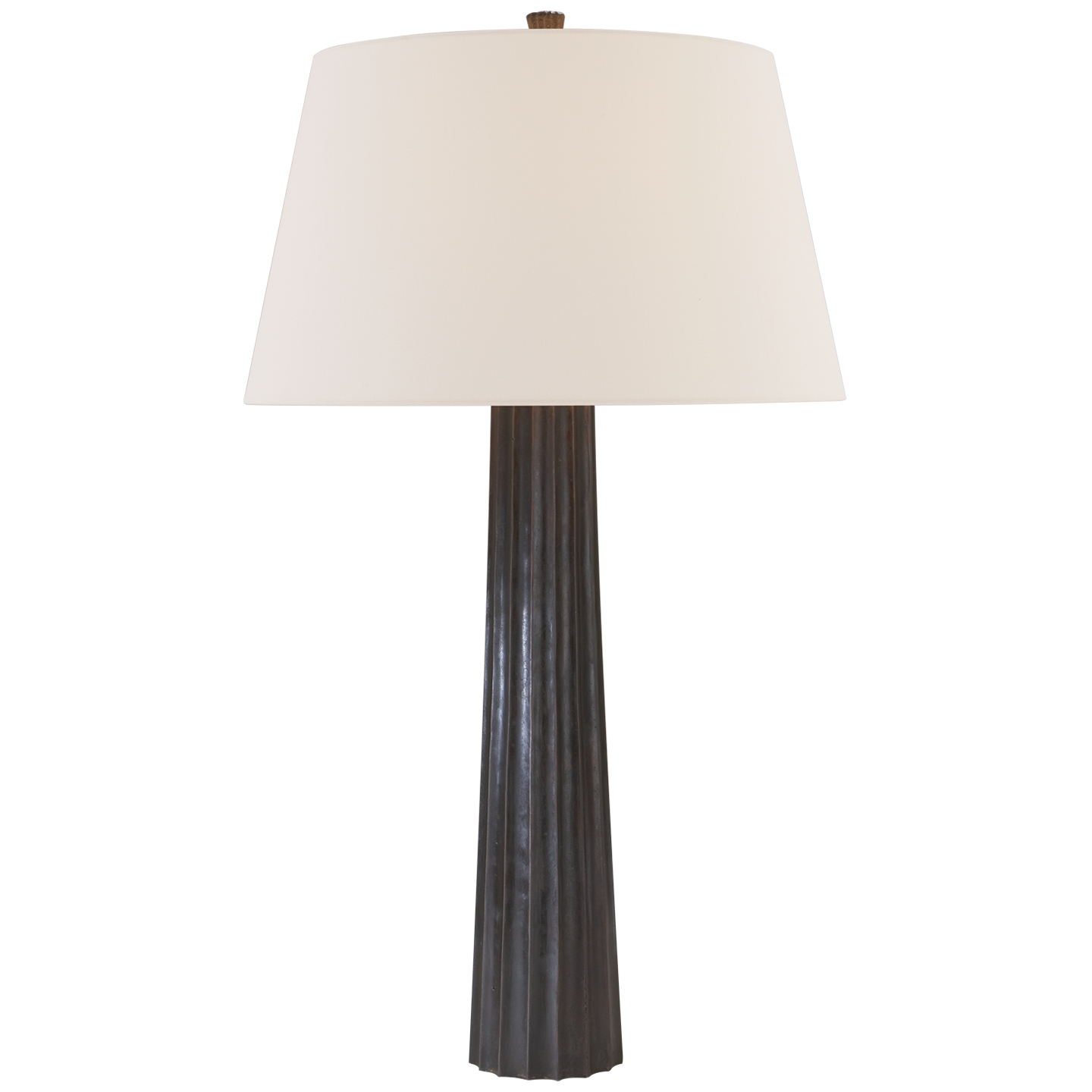Fluted Spire Large LED Cordless Table Lamp with Linen Shade in 3 finishes: Plaster White, Aged Iron and Gilded Iron