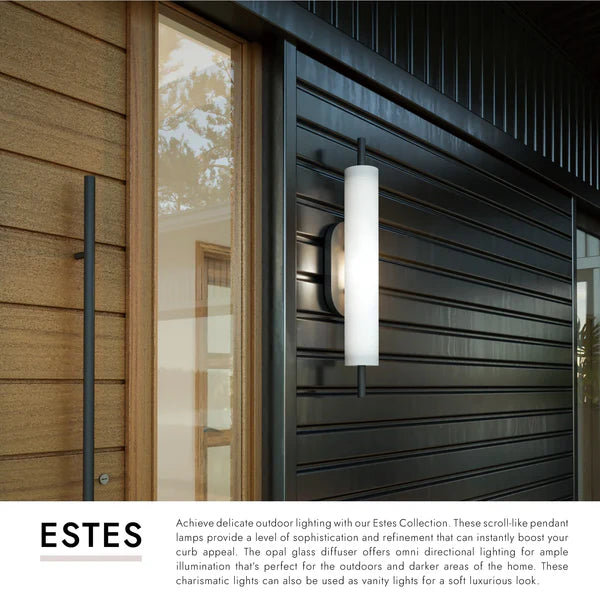 Achieve delicate outdoor lighting with our Estes Collection. These scroll-like pendant lamps provide a level of sophistication and refinement that can instantly boost your curb appeal. The opal glass diffuser offers omni directional lighting for ample illumination that's perfect for the outdoors and darker areas of the home. These charismatic lights can also be used as vanity lights for a soft luxurious look.