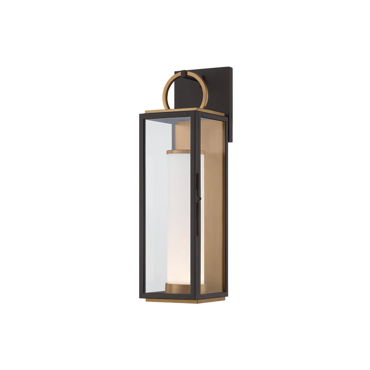 Drawing inspiration from traditional lanterns, this family of sleek exterior fixtures includes sconce and a portable lantern in multiple sizes. Elongated silhouettes and a mixed-finish combination of Textured Black and Patina Brass give these lanterns a contemporary update. While Gareth is equipped with a single chunky pillar candle for a timeless look, the light source is actually a lightweight aluminum puck with LED technology housed the bottom of the glass cylinders. Gareth is available as both a sconce and a portable lantern in multiple sizes. The portable option is rechargeable and includes a convenient handle for easy transport.