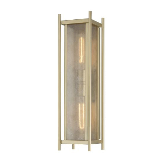 Brighten outdoor entries with the layered light of the Savoy House Jacobs 2-light outdoor wall lantern. Clear mica glass softens the illumination and is beautifully balanced by the Serene Brass & Black finish. Jacobs is 22" tall, 5.75" wide and extends 6" from the wall. Uses two standard size bulbs of up to 60 watts per bulb. Bulbs not included. Wet area rated.