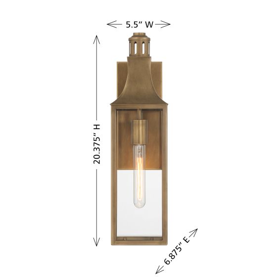 Introduce inviting, heritage-inspired charm to your exterior with the Savoy House Lancaster 1-light outdoor wall lantern. Its heirloom lantern design and tall, narrow profile make it an ideal choice for side entries and pathways. Clear glass brightens your great outdoors while the Atlas Bronze finish enhances the fixture’s traditional appeal. Lancaster is 20.38" tall, 5.5" wide, and extends 6.88" from the wall. Uses one standard bulb of up to 60 watts (not included). Wet area rated.