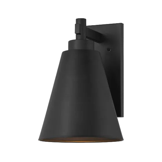The rustic-inspired Savoy House Ryder 1-light outdoor wall sconce is a stylish light that gives off a considerate glow. Its solid metal shade is finished in Matte Black and Bronze and has a design that reduces light pollution through concentration and direction, making it Dark Sky friendly. Ryder is 15" in height, 10" in width and extends 11" from the wall. Uses one standard size bulb of up to 60 watts. Bulb not included. Ryder is wet area rated for use in covered or uncovered outdoor areas.