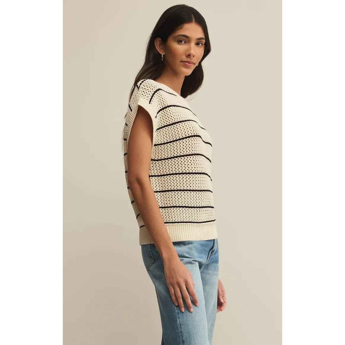 Breezy and effortless, this sleeveless crochet knit top features an airy open weave and yarn-dyed stripes for a vintage-inspired feel. A must-have layering piece, it pairs perfectly with everything from high-rise denim to flowy skirts.