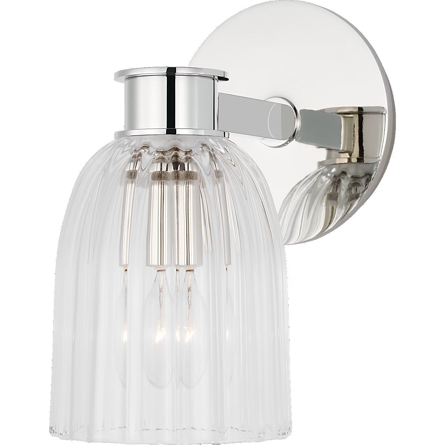 Reinterpreting mid-century French design with a contemporary lens, the Asalea by AERIN combines the elegance of clear ribbed glass with polished nickel and hand-rubbed antique brass metal finishes. Available in a two-tiered chandelier and sconce, the cup-shaped light creates a refined silhouette that can accent any interior style.