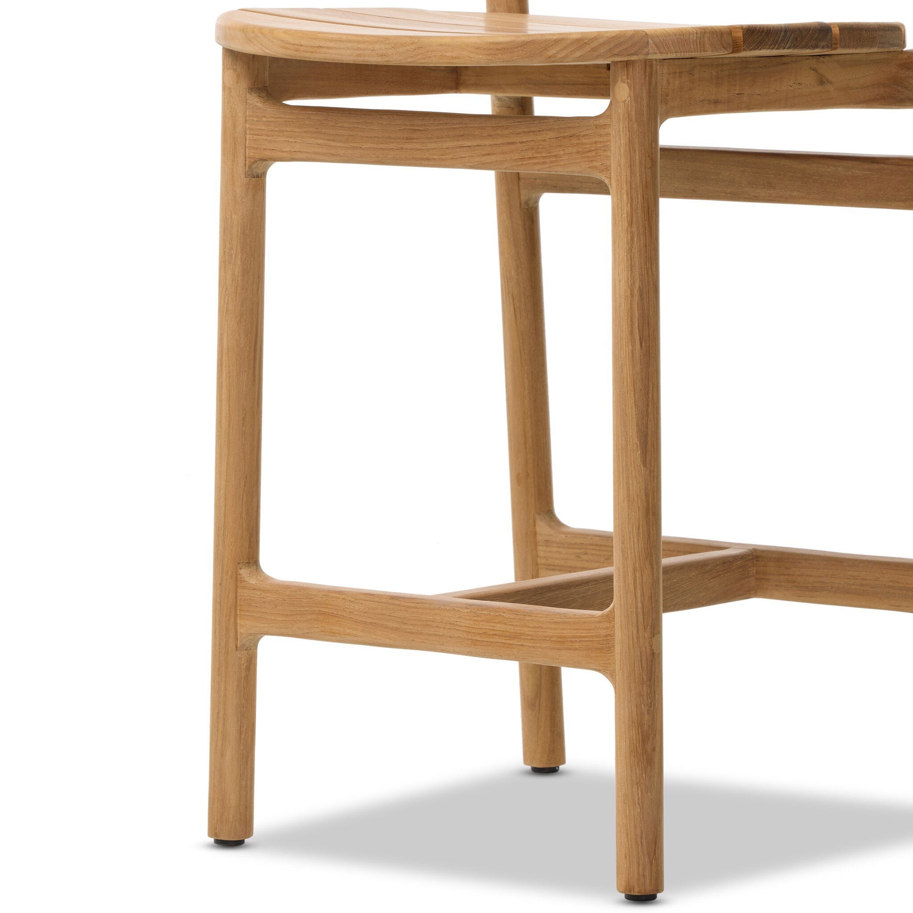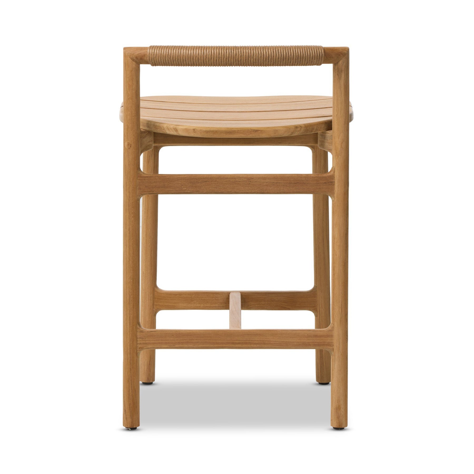 Design-forward with a minimalist FSC®-certified sanded teak frame, this outdoor counter stool features a cushioned seat and a low back with corded detailing. Cover or store indoors during inclement weather and when not in use.