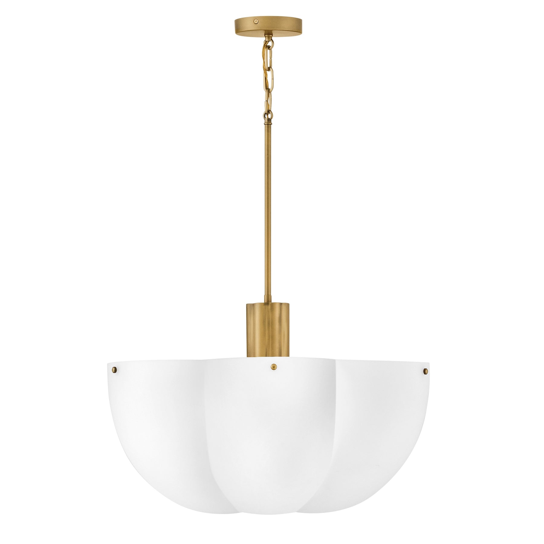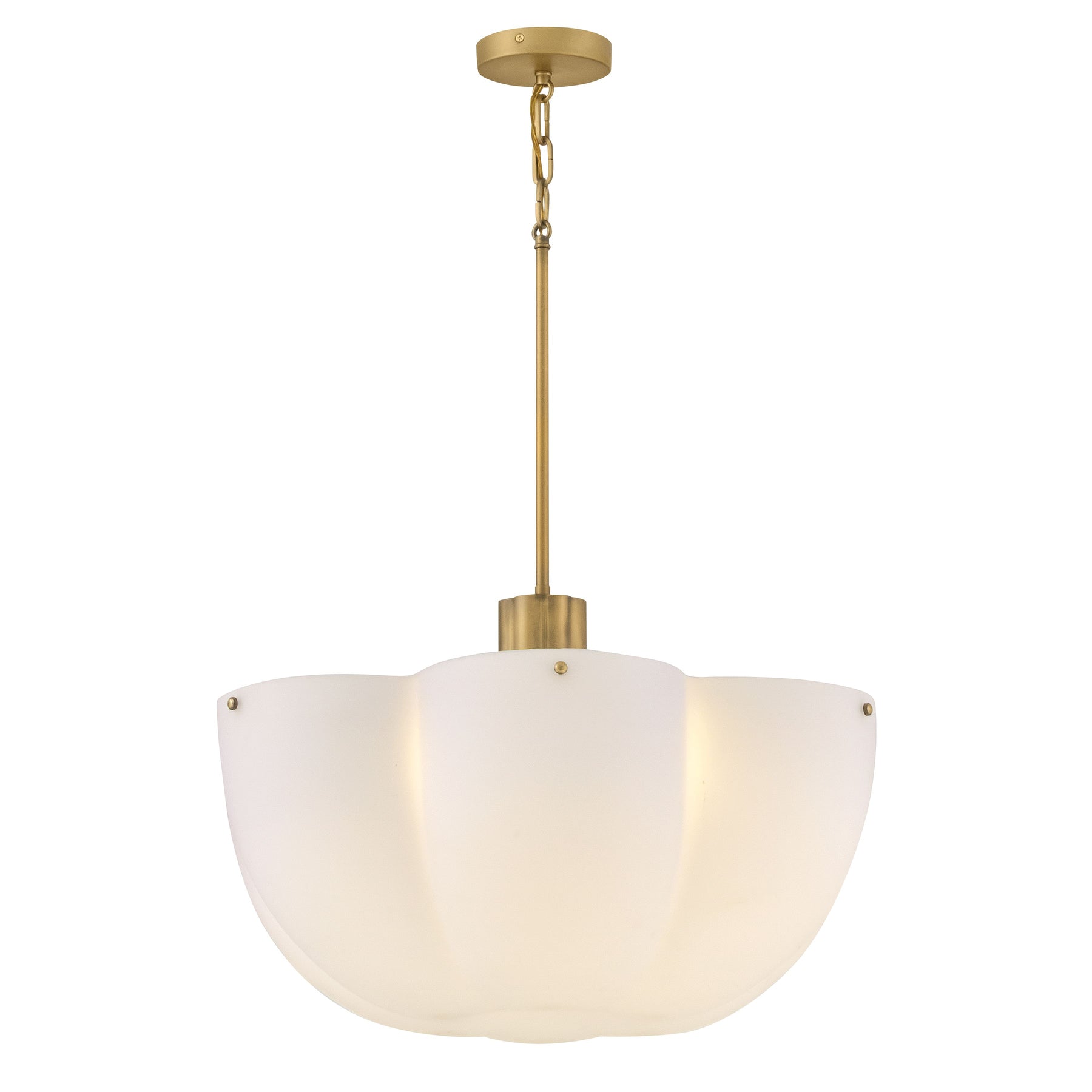 Shapely and beautiful, Becca’s cloverlike shade is hand-blown from etched opal glass and diffuses even bright light throughout your living space. A classic Heritage Brass finish accentuates ribbed detailing.