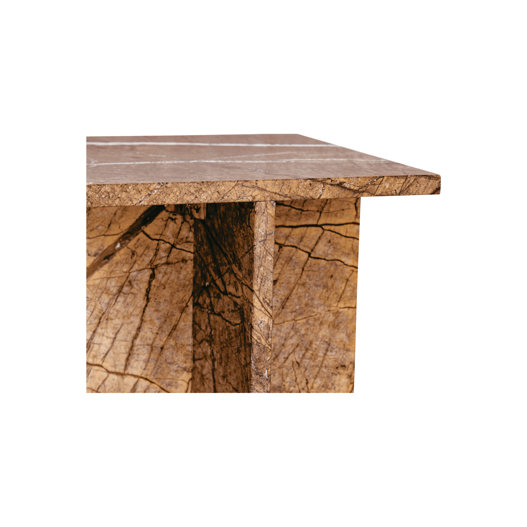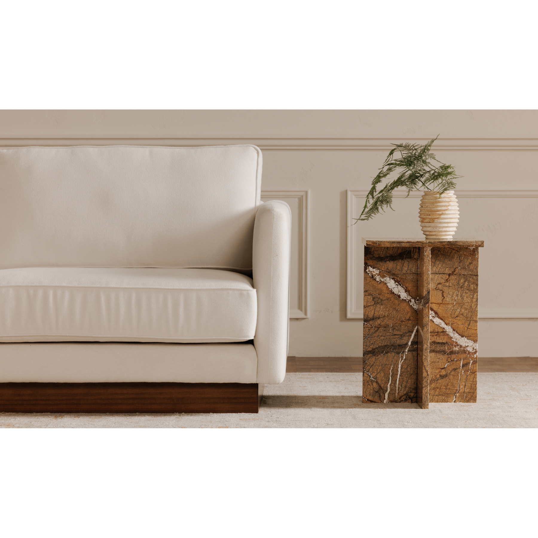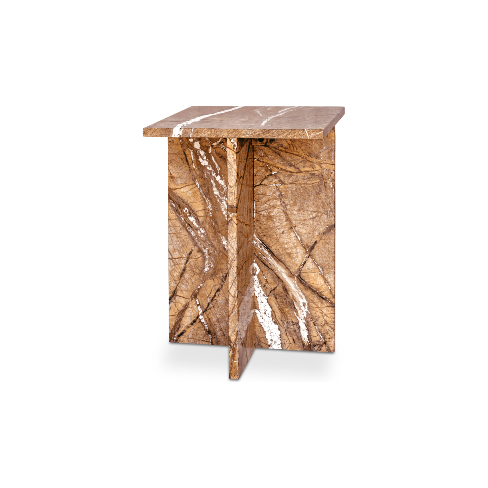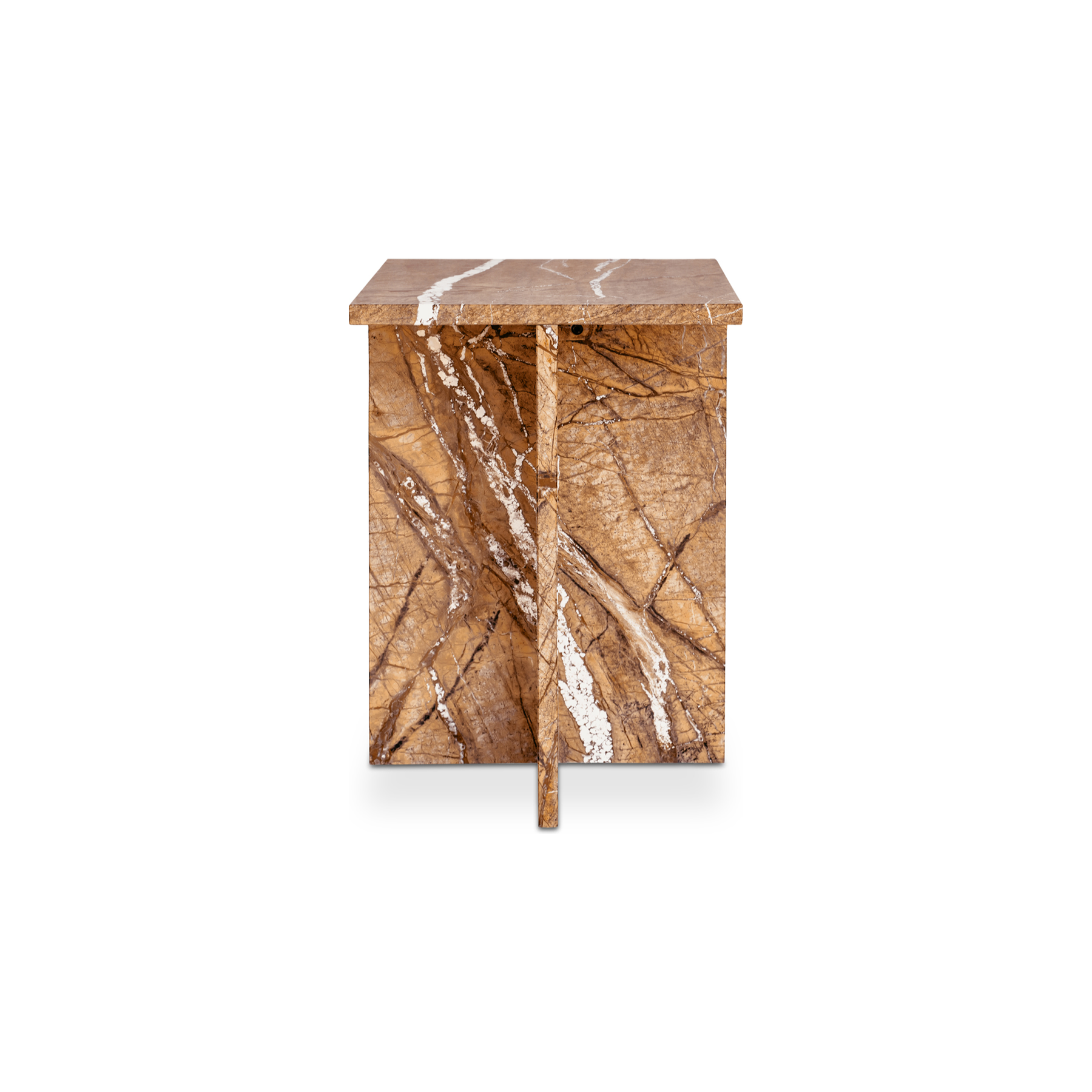 Crafted from solid golden forest marble, the Blair accent table's clean, linear form accentuates the expressively coloured stone. Unique veining ensures that no two pieces are alike, as the patterning showcases the organic beauty of nature that dances across its facade.