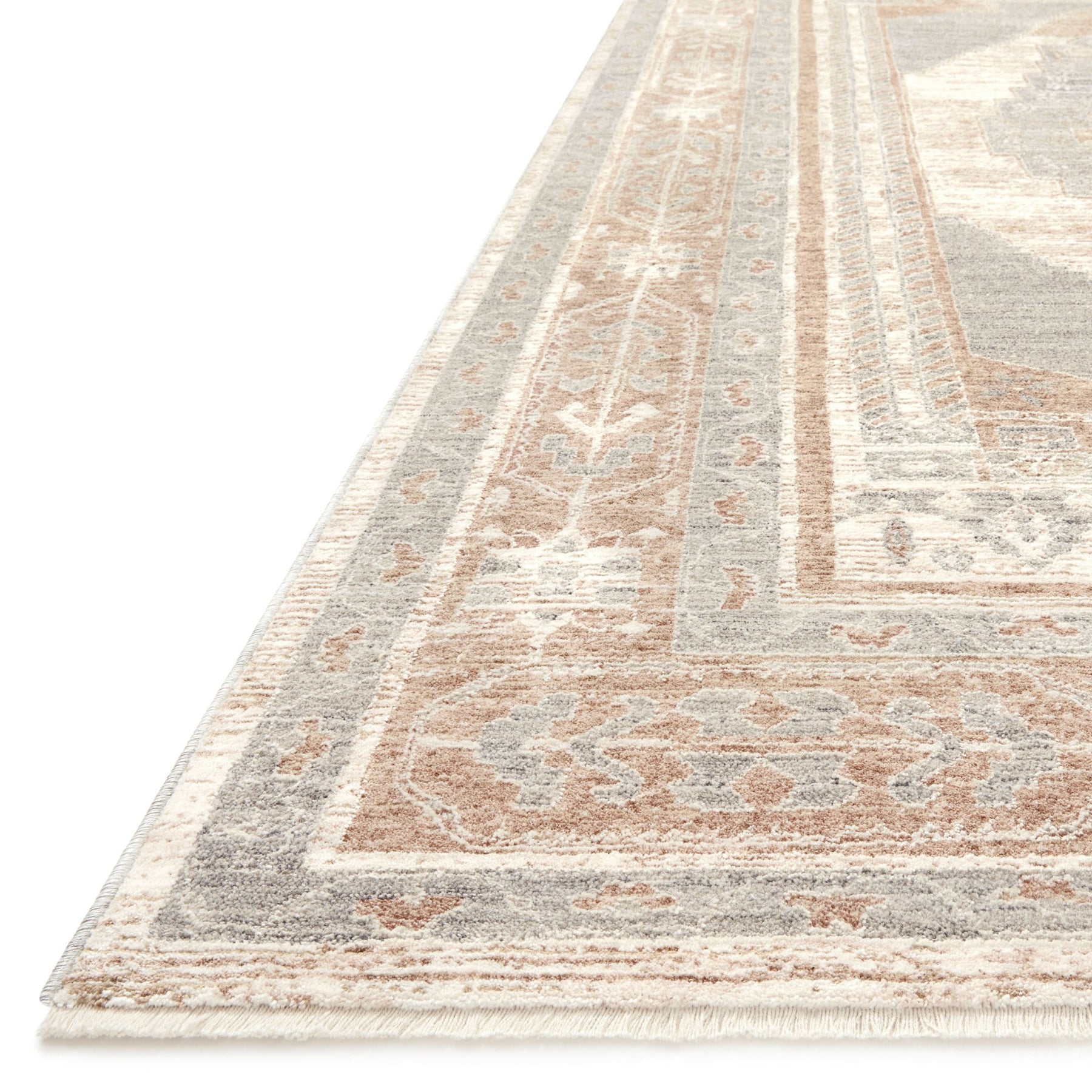 Power-loomed of polyester and viscose pile in Turkey, the Carlisle Collection for Magnolia Home by Joanna Gaines displays a soft color palette and a mix of distressed and traditional-inspired motifs. Crafted by Loloi.