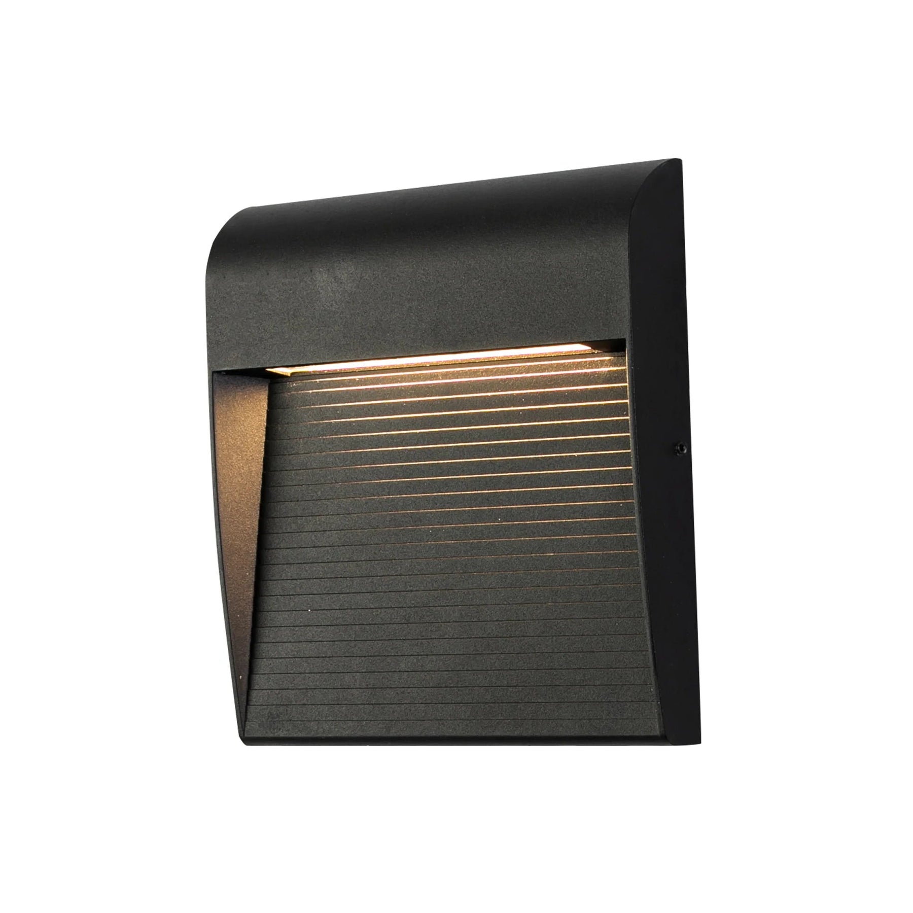 Newly re-designed Non-Climbable exterior wall-mounted fixtures. Light is directed downward from a recess, and the incline allows the glow to radiate gradually. Vanishingly thin and ideal for egress, courtesy, and grace lighting.