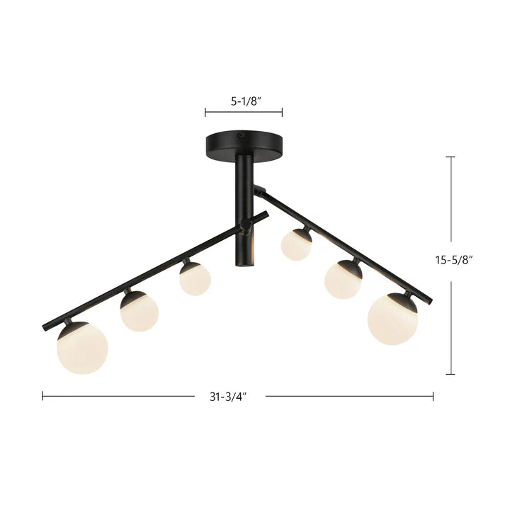 Cypress’s shape expands and contracts to suit your space’s needs. Each “branch” of the Cypress collection adjusts to lengthen or collapse, creating a customized look. Atop each arm sits three growing Matte Opal glass globes stretching outwards to create depth and emphasis.