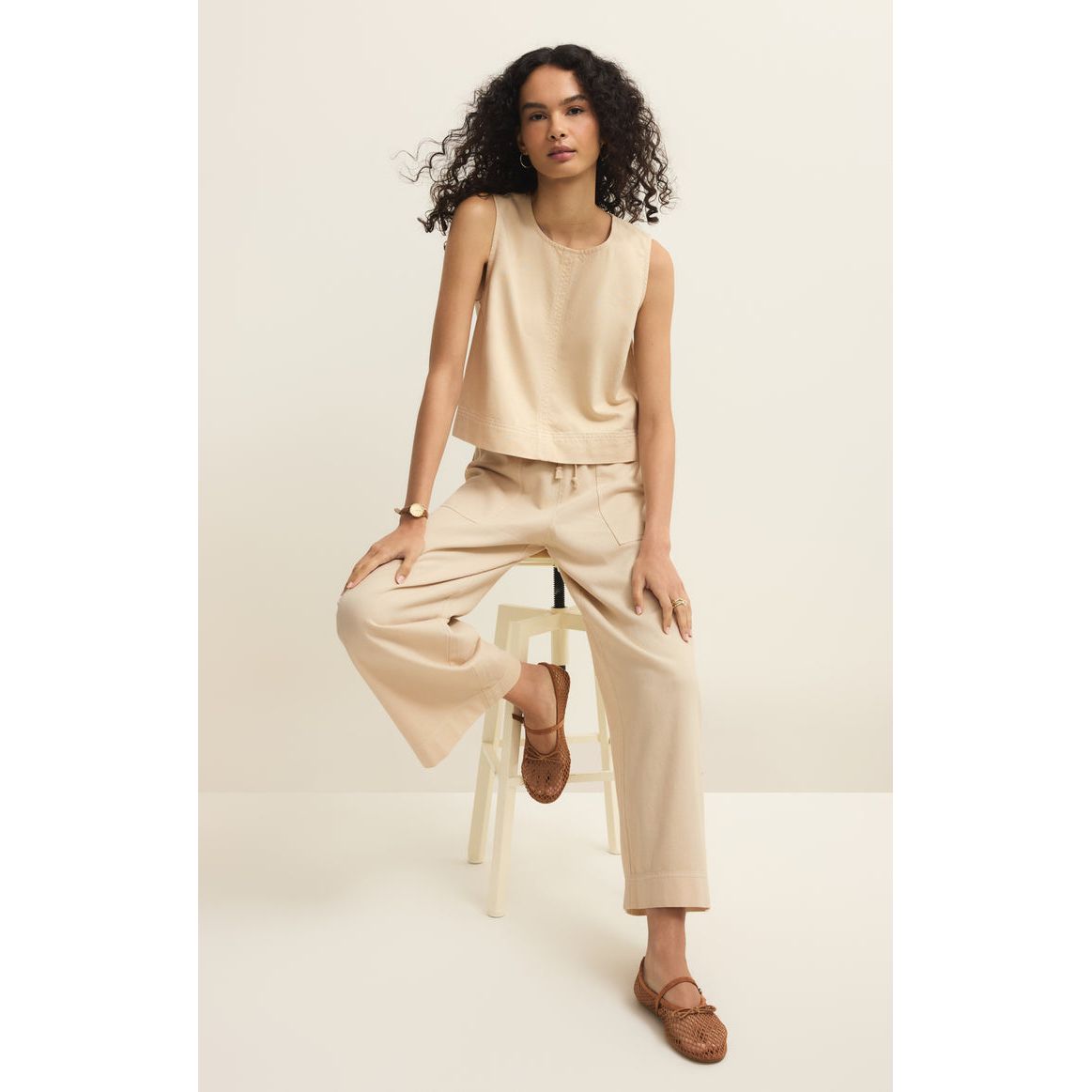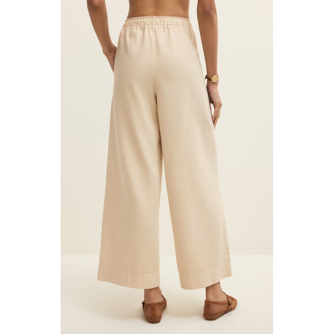 Crafted from a breezy twill fabric, this pant combines an ankle length, wide leg fit with an easy elastic waistband for all-day comfort. The smooth texture make it a travel-ready favourite.