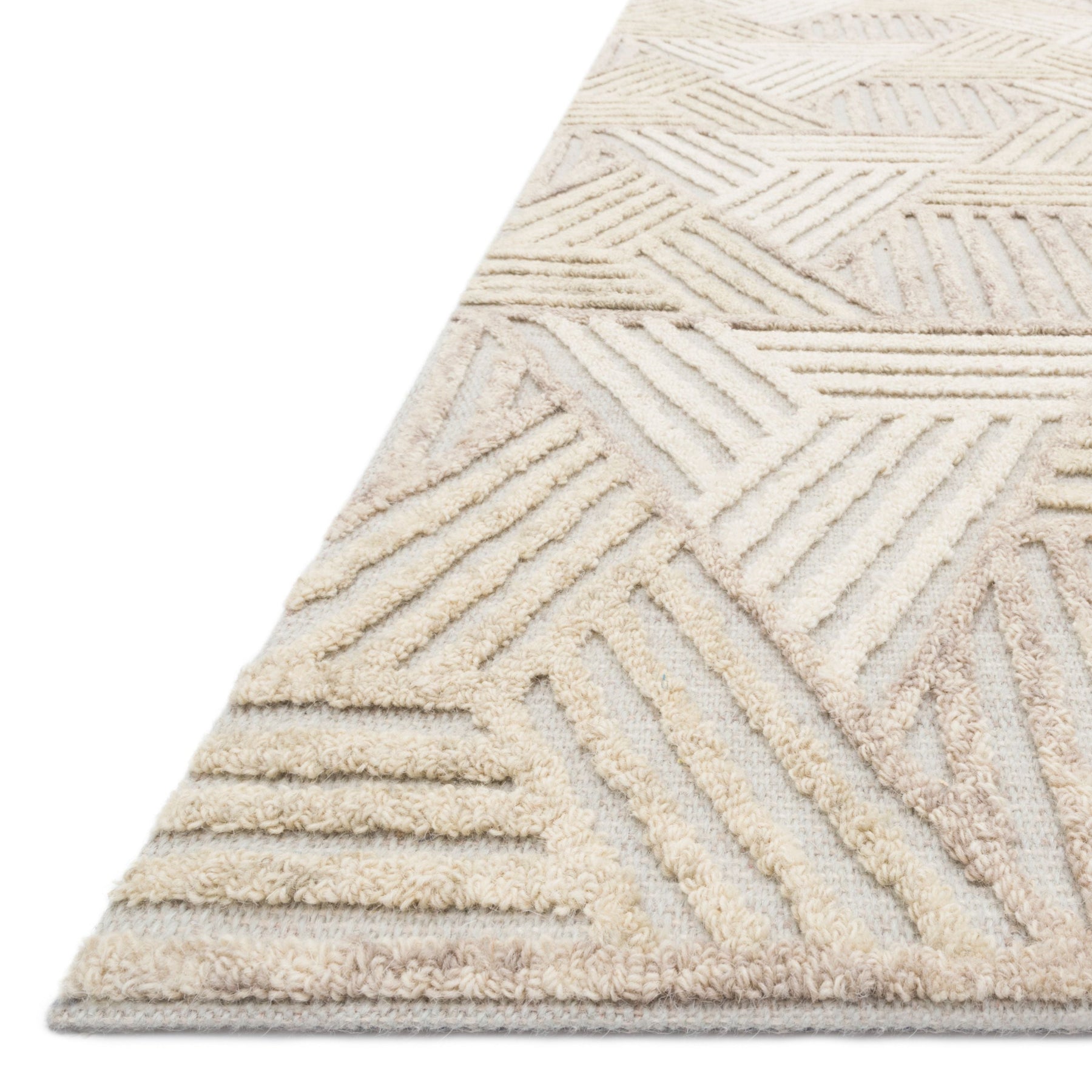 Hand-tufted by skilled artisans in India, the Ehren Collection has a neutral palette, which is offset by strong, yet textural geometric patterns creating a subtle, long-lasting rug made of 100% wool pile.