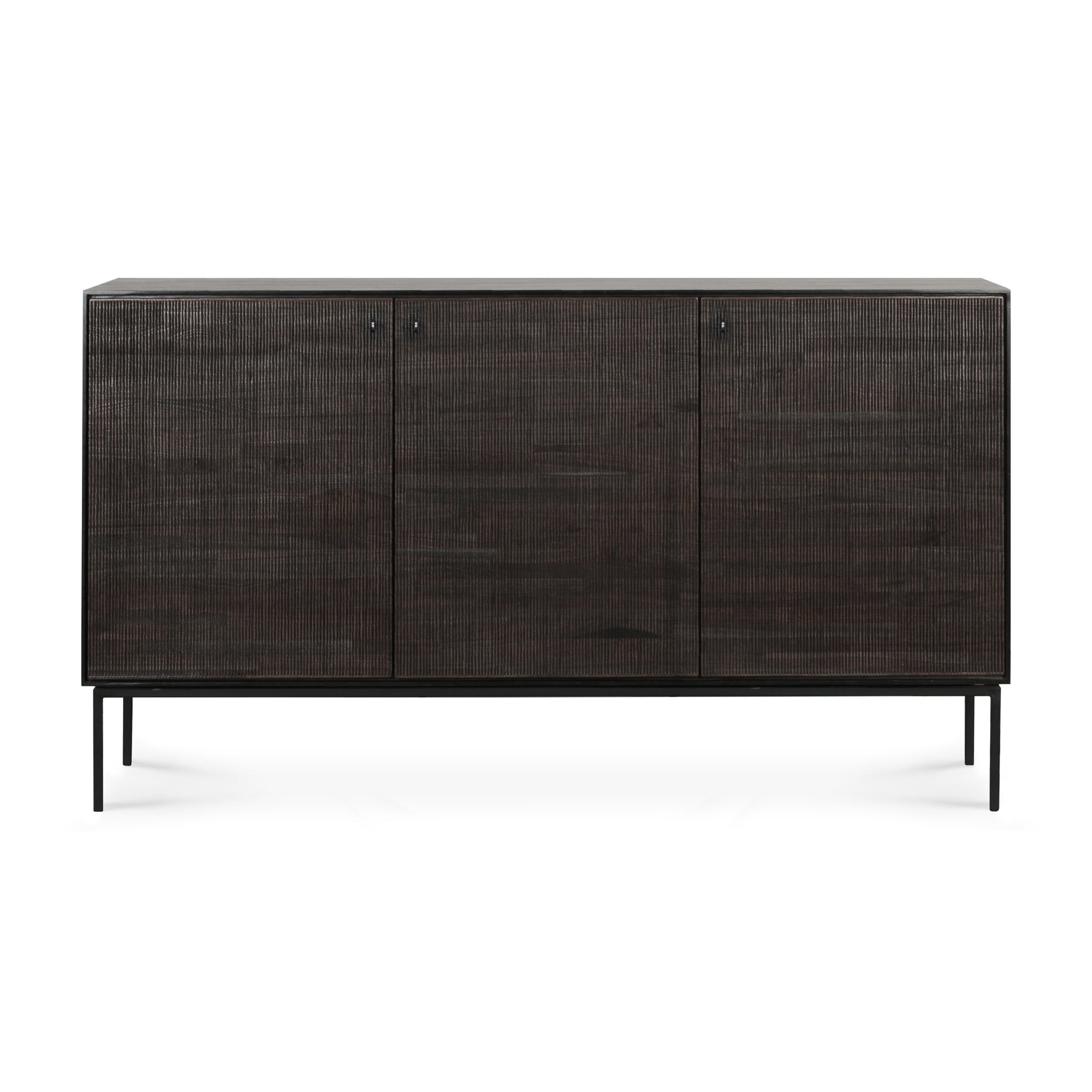 The Grooves Sideboard by Ethnicraft, is soulful to say the least. Every single line you see is hand carved, making each piece truly unique. Small imperfections are part of the story, even more so: they enhance Grooves' character. The result is a slightly different surface every time, each with its own rhythm and dynamics. The beautiful dark tinted teak continues on the inside, where shelves will hold your most cherished objects.