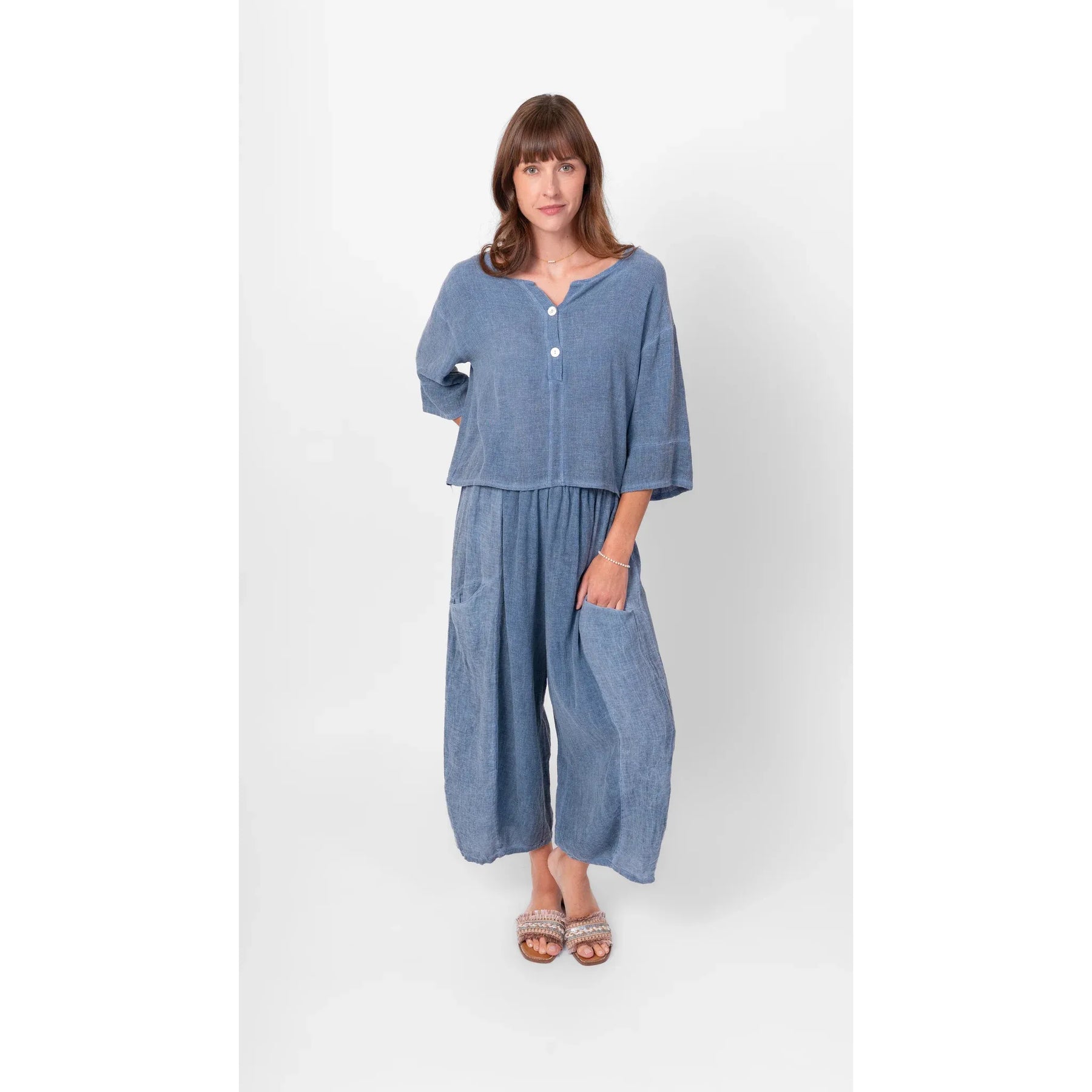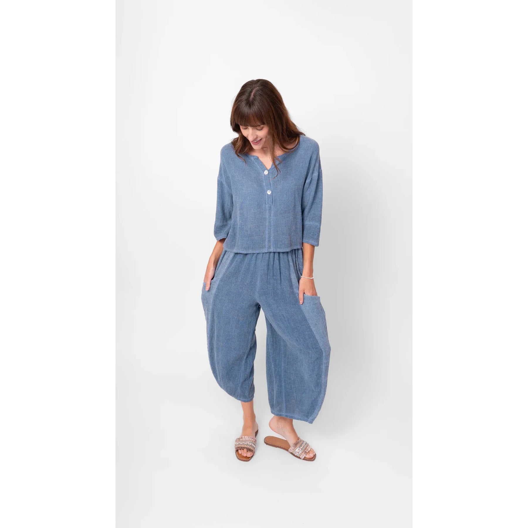 The ultimate comfort and stylish pant for warmer days. Featuring pockets on either