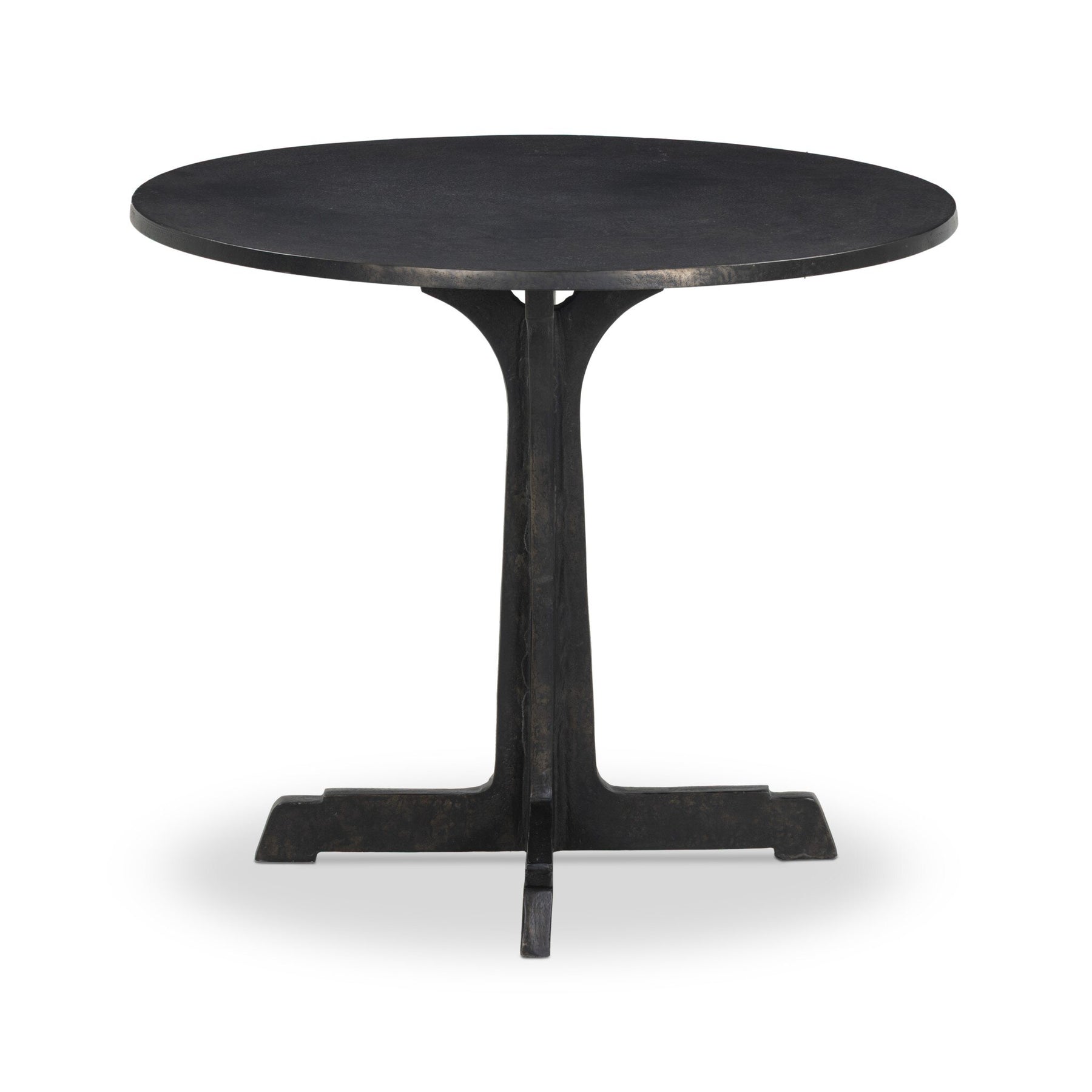 Traditional shaping meets modern details in this copper-toned outdoor dining table, with sleek framing and a one-of-a-kind antiqued finish. Cover or store indoors during inclement weather and when not in use.