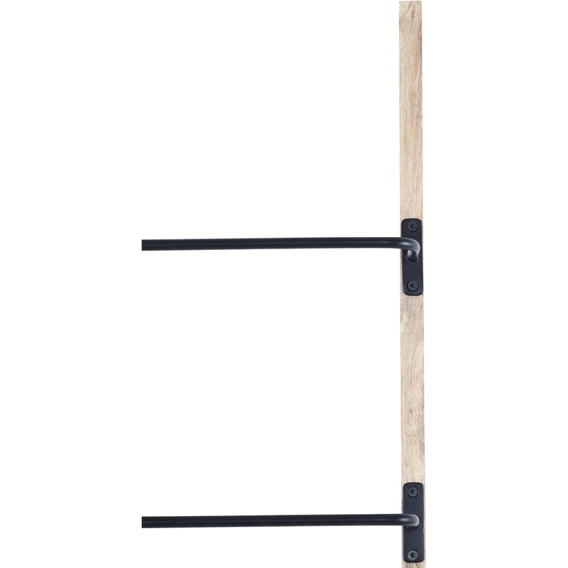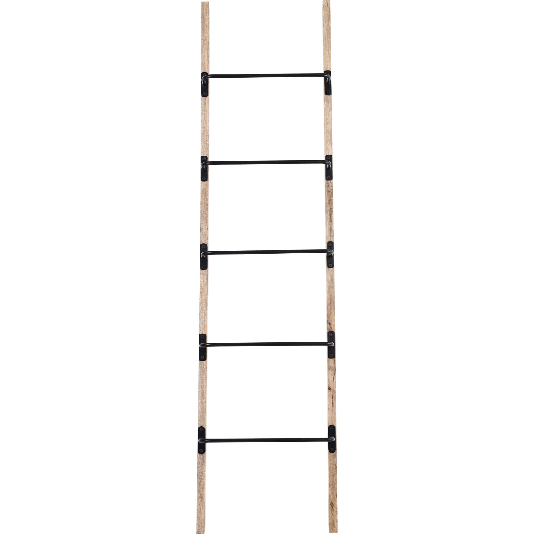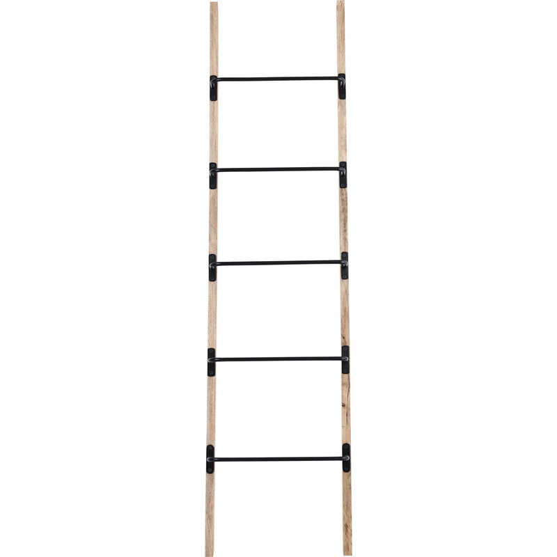 This decorative ladder seamlessly blends industrial charm with modern elegance, enhancing any contemporary space. Standing 72 inches tall, it adds vertical interest to bedrooms or living rooms, whether draped with cozy throws or displayed alone as a striking accent. Crafted from mango wood and finished with matte black powder-coated aluminum, it combines natural warmth with a refined, bold aesthetic.