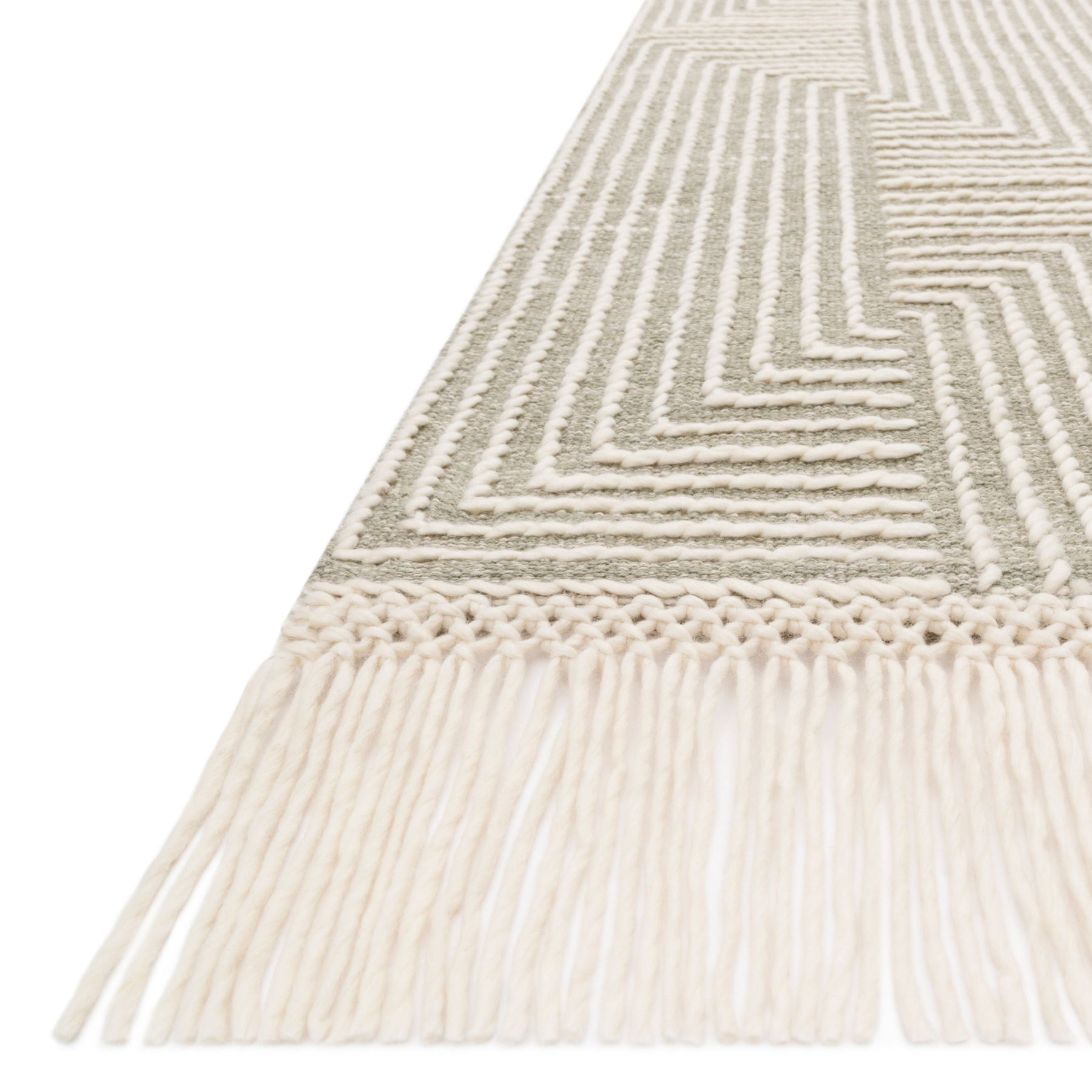 The Newton Collection for Magnolia Home by Joanna Gaines is hand woven by artisans in India of wool, cotton, viscose, nylon, polyester, and acrylic. Boasting a relaxed linear design with a subtly heathered backdrop, Newton creates visual interest through coils of textured yarn finished with a macramé fringe. Crafted by Loloi.