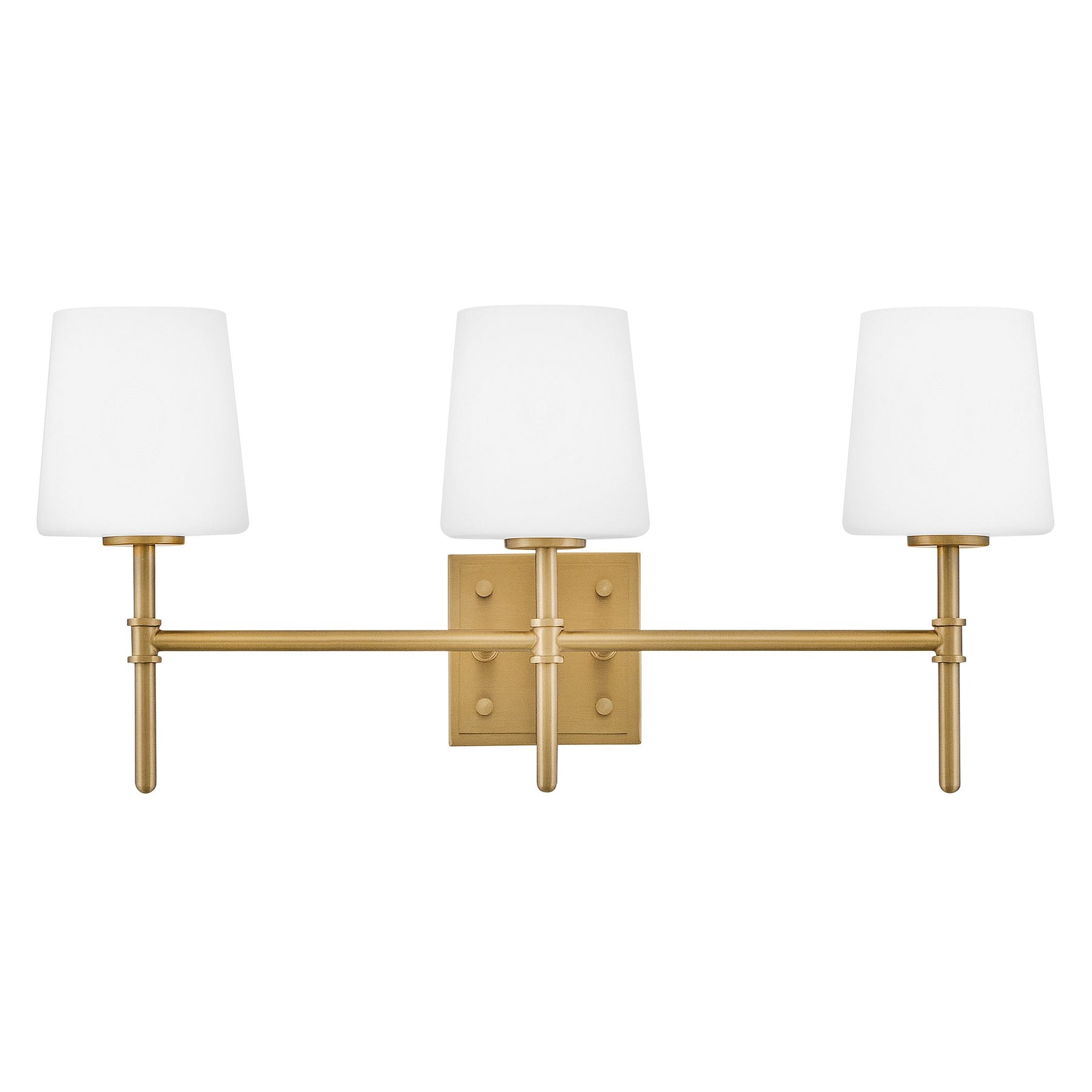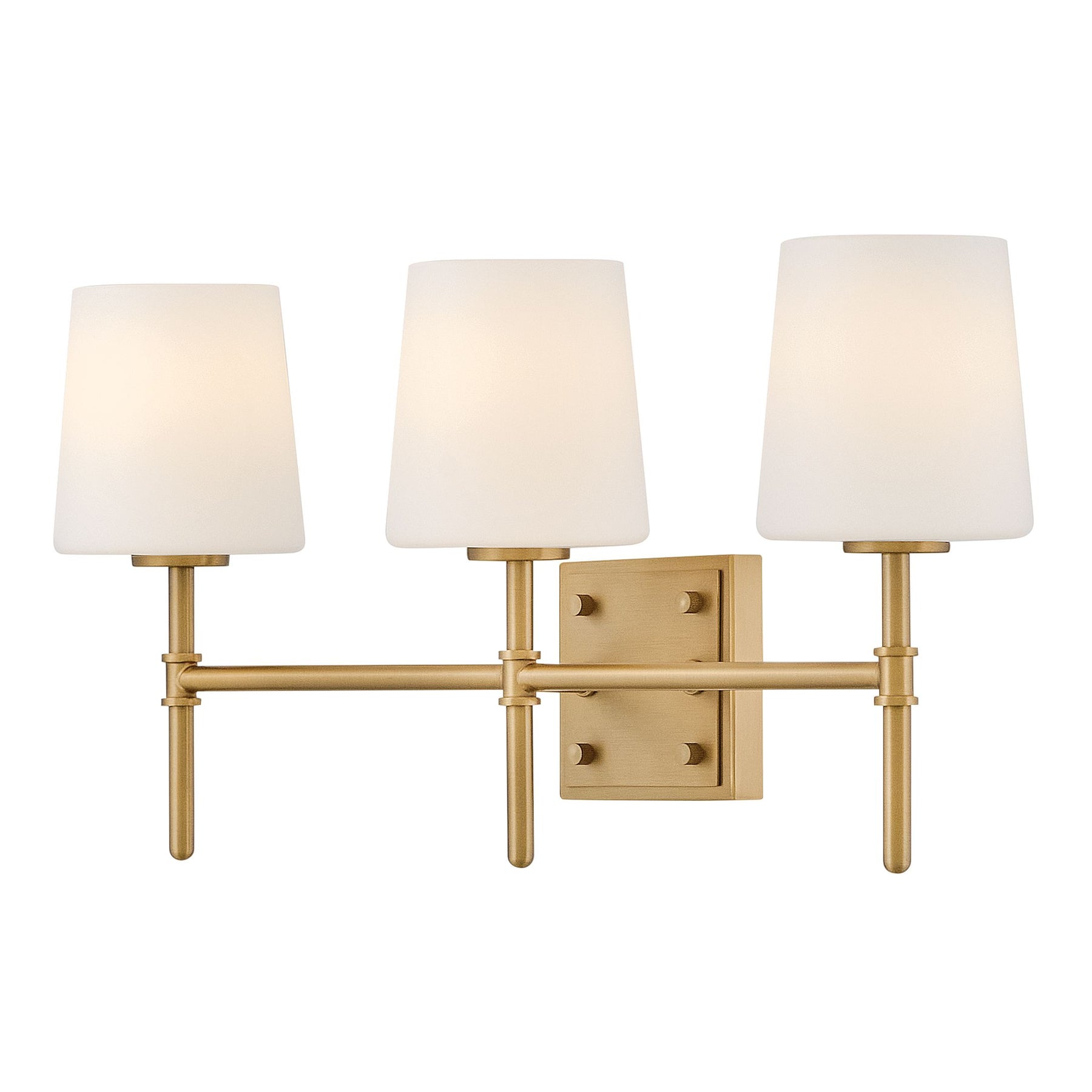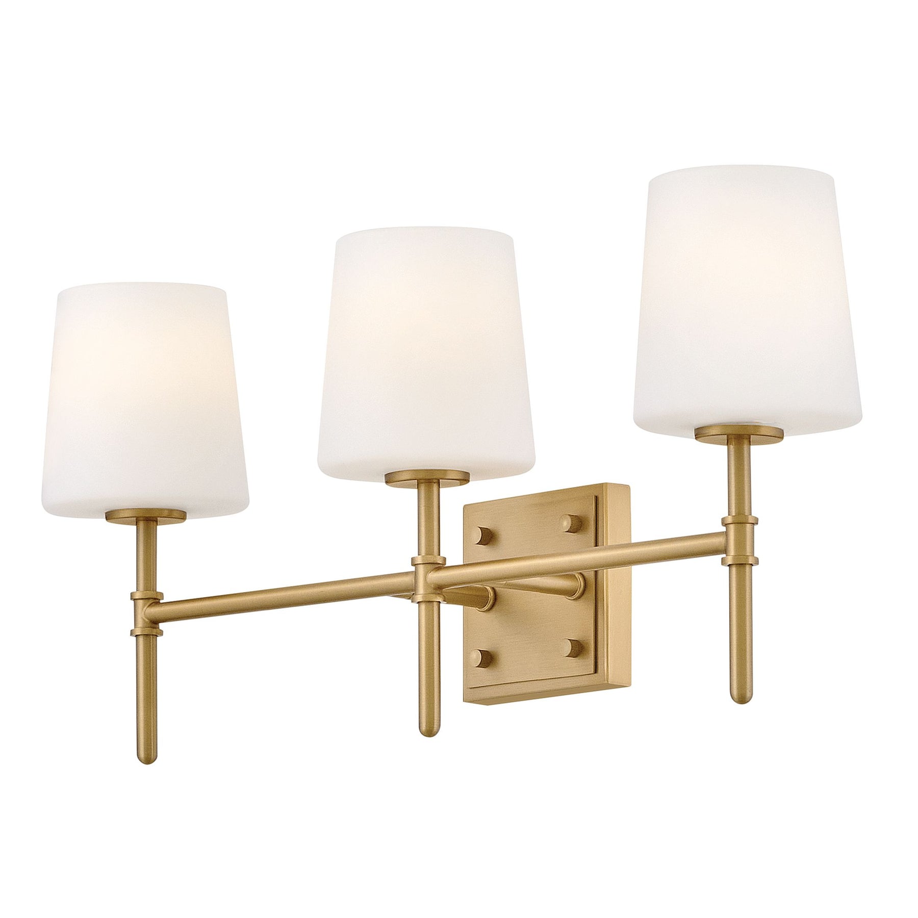 Saunders boasts a striking yet effortless appeal, blending traditional elements with captivating, midcentury modern details. A slim silhouette and decorative stem holders are finished in Lacquered Brass or Black with Lacquered Brass, paired with blown, etched opal glass shades.