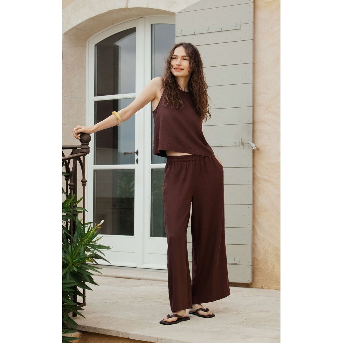 Detailed with an elastic waistband, side seam pockets, and washed linen blend fabric, these high rise pants will be a forever staple in your wardrobe. Make it a set with the Sloane Linen Top.