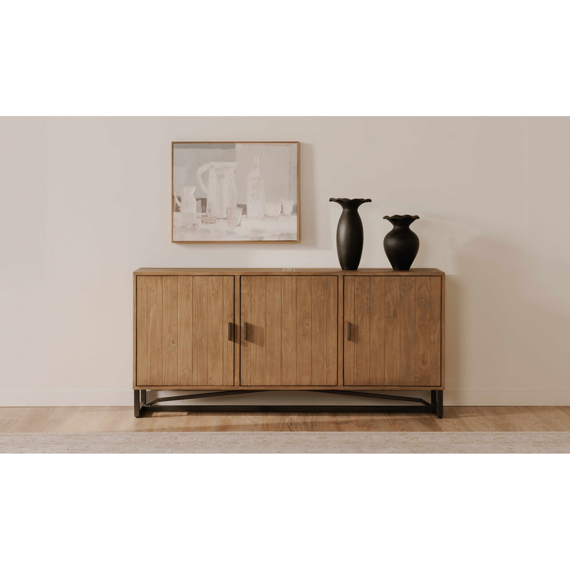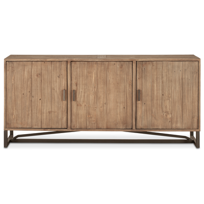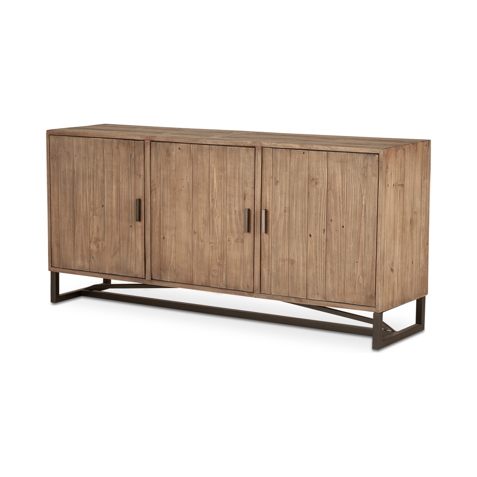 Made with solid reclaimed pine, the Sierra Sideboard exhibits natural woodgrain and knot variances. Its six shelves provide ample space to store your dinner essentials and more. A solid metal base gives this sideboard its transitional design.