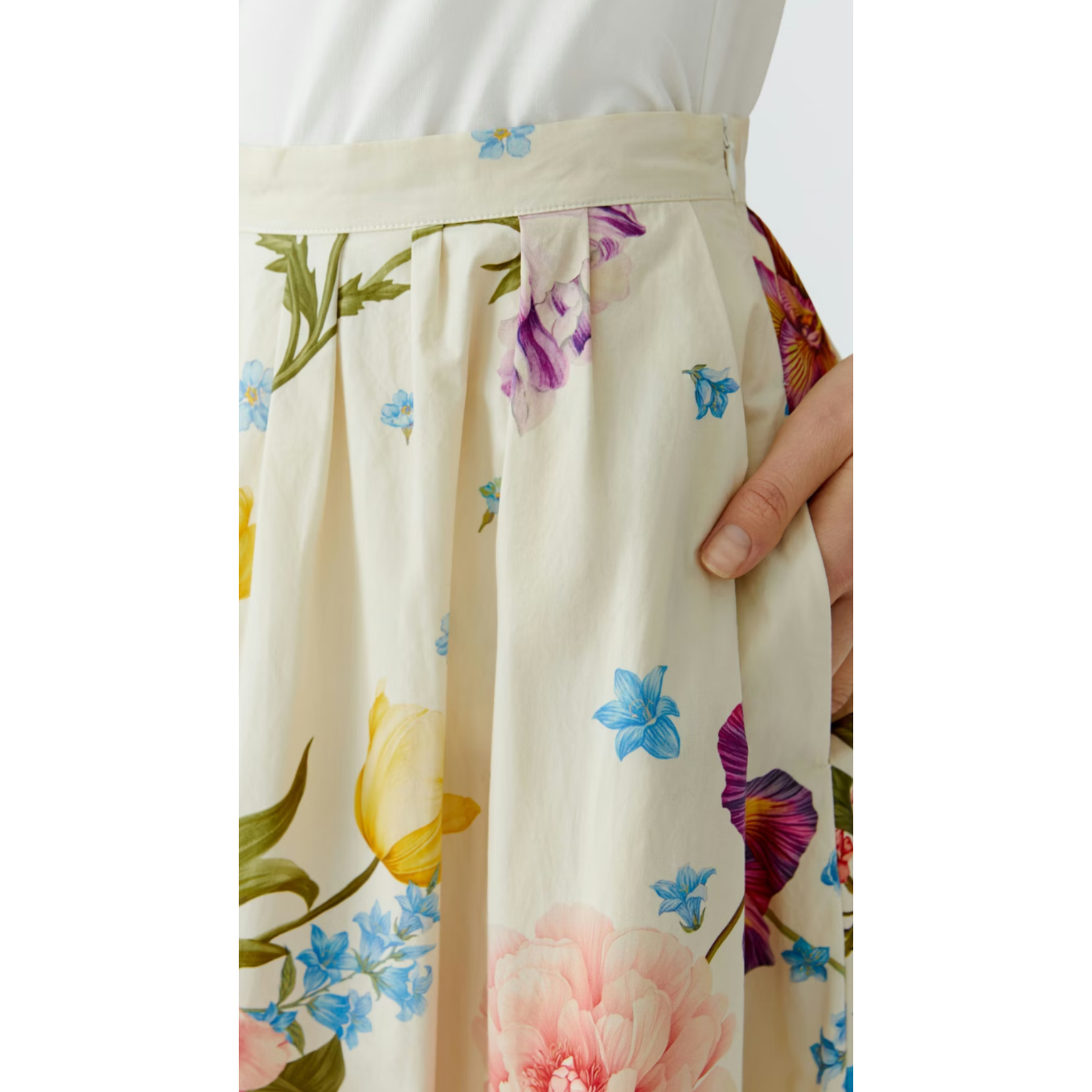 - Fixed waistband with seam-fine zipper in the side seam
