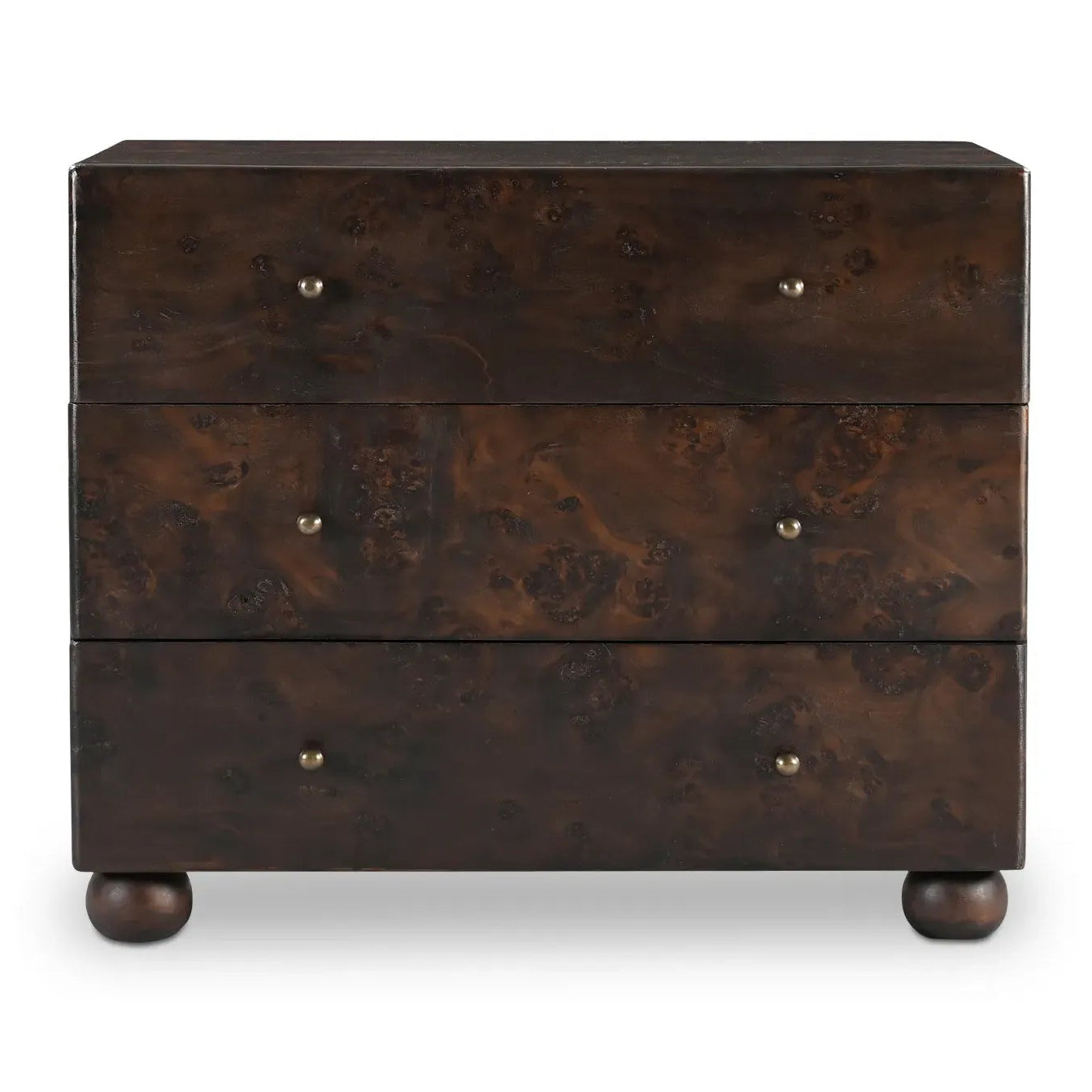 As if it tells a story woven through generations, the York 3-drawer nightstand was born from a profound respect for heritage. With burl veneer and brass detailing, this collection celebrates the beauty and significance of heirlooms passed down through families--designed to be as timeless as the memories they will hold, with the hope that someday, future generations may cherish them.